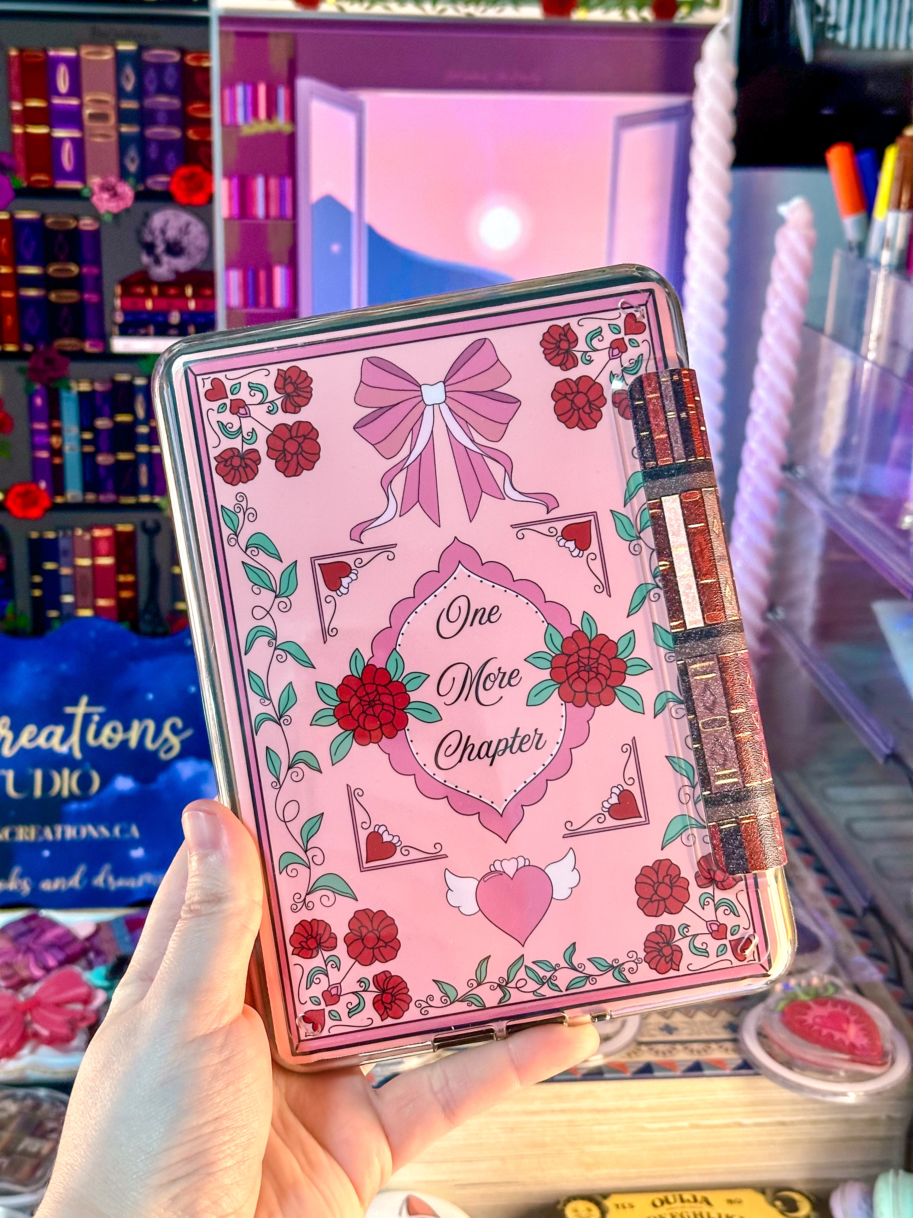 A woman owned Canadian small business that specializes in creating unique bookish goods and original artwork inspired by book worlds. Explore cute kindle cases, device grips, bookish hair clips, stationery, and more!