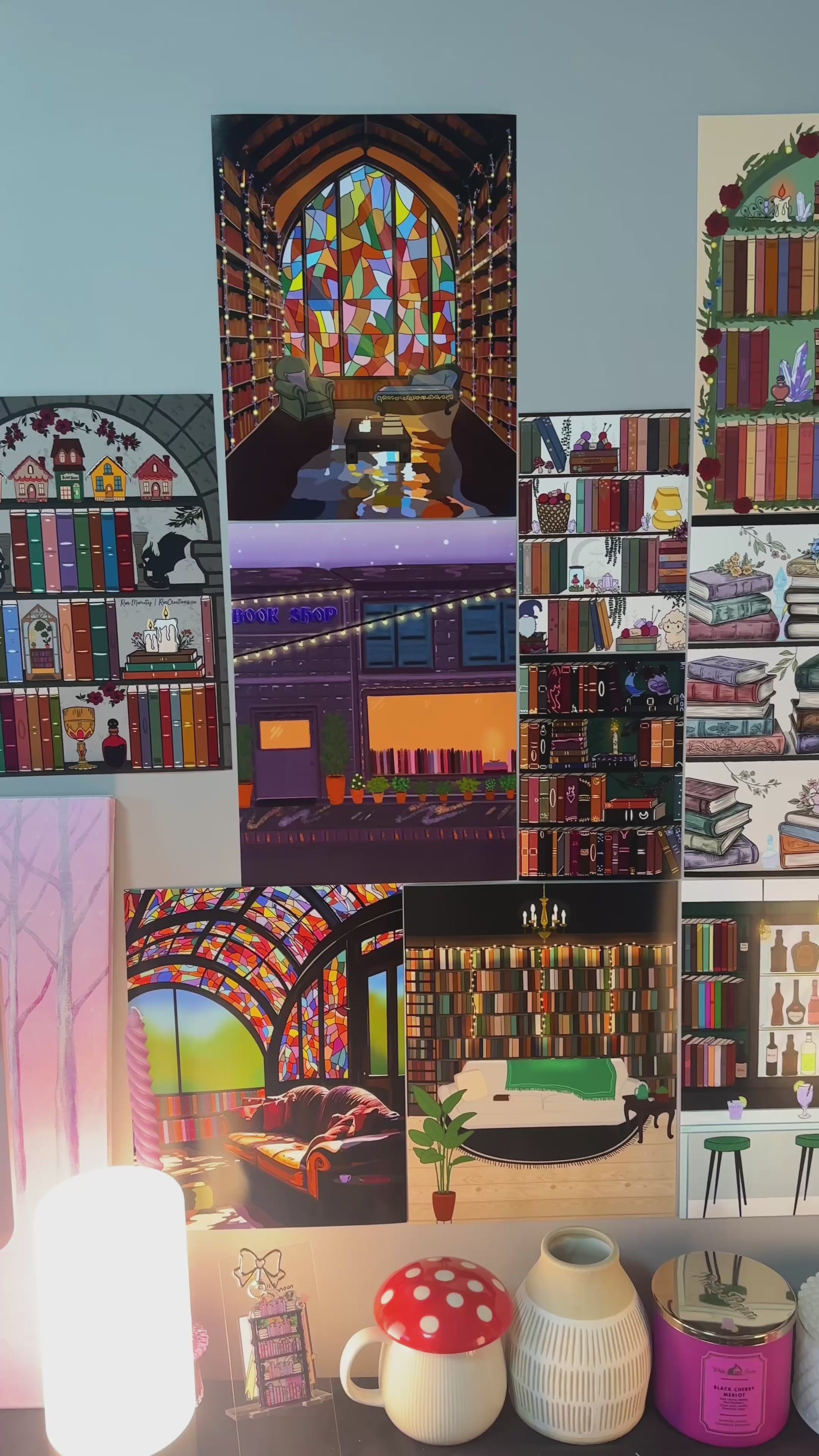 Transform your space into a cozy library with this original art print. Perfect for book lovers, this print brings a warm and welcoming atmosphere to any room. Indulge in your love for all things bookish with this charming addition to your home decor.