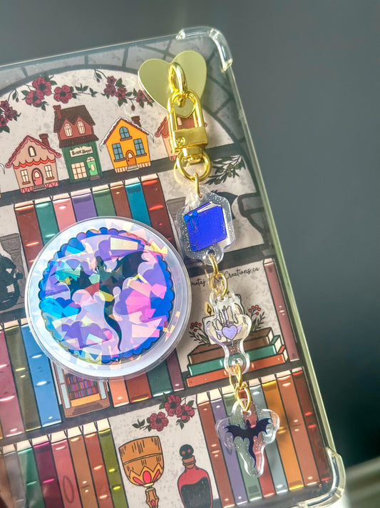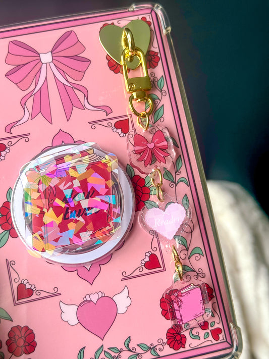 Cute, glitter acrylic charms featuring original designs so you can decorate your kindle, kobo, or other device!