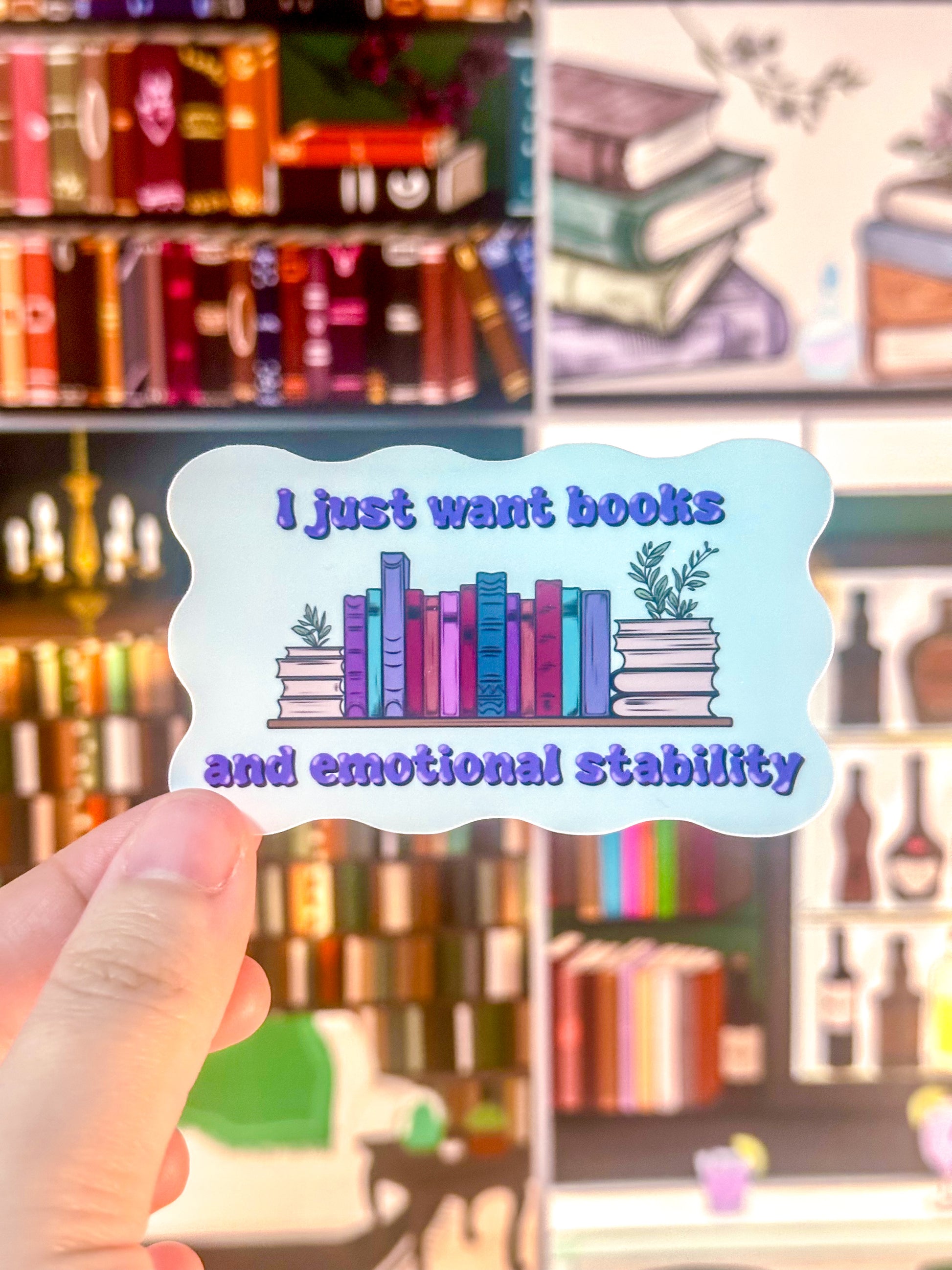 Get ready to declare your love for books and emotional stability with this sticker! The perfect accessory for any book lover, this sticker is bookish in design and will add a touch of quirkiness to any surface. Don't just want books, show it with this fun sticker!