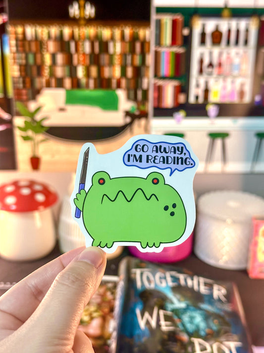 Disgruntled Froggie Says Go Away Im Reading Die Cut Sticker