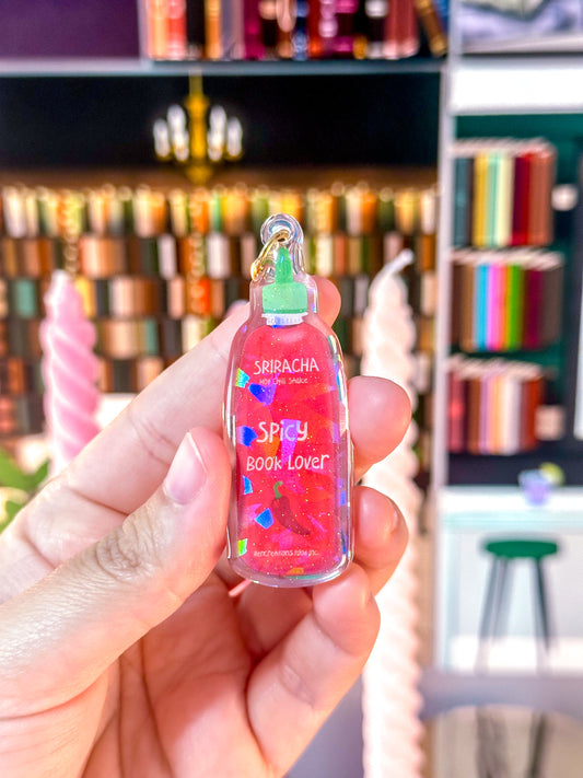 Sriracha Spicy Book Lover Acrylic Holographic Keychain