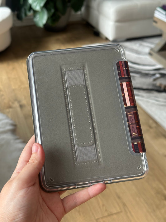 Dark Romance Bookshelf Kindle Paperwhite Case With Clear Back And Hand Strap