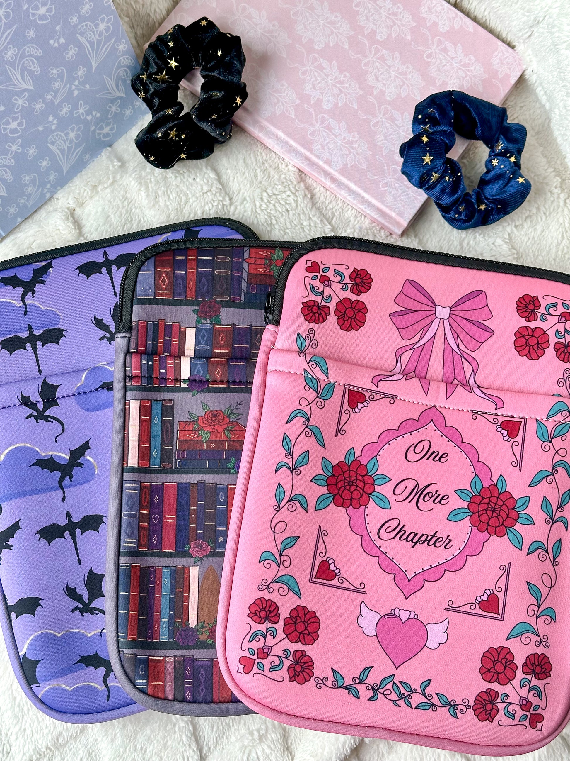The cutest girlie book sleeve featuring original artwork and design. For those who always want to read one more chapter...